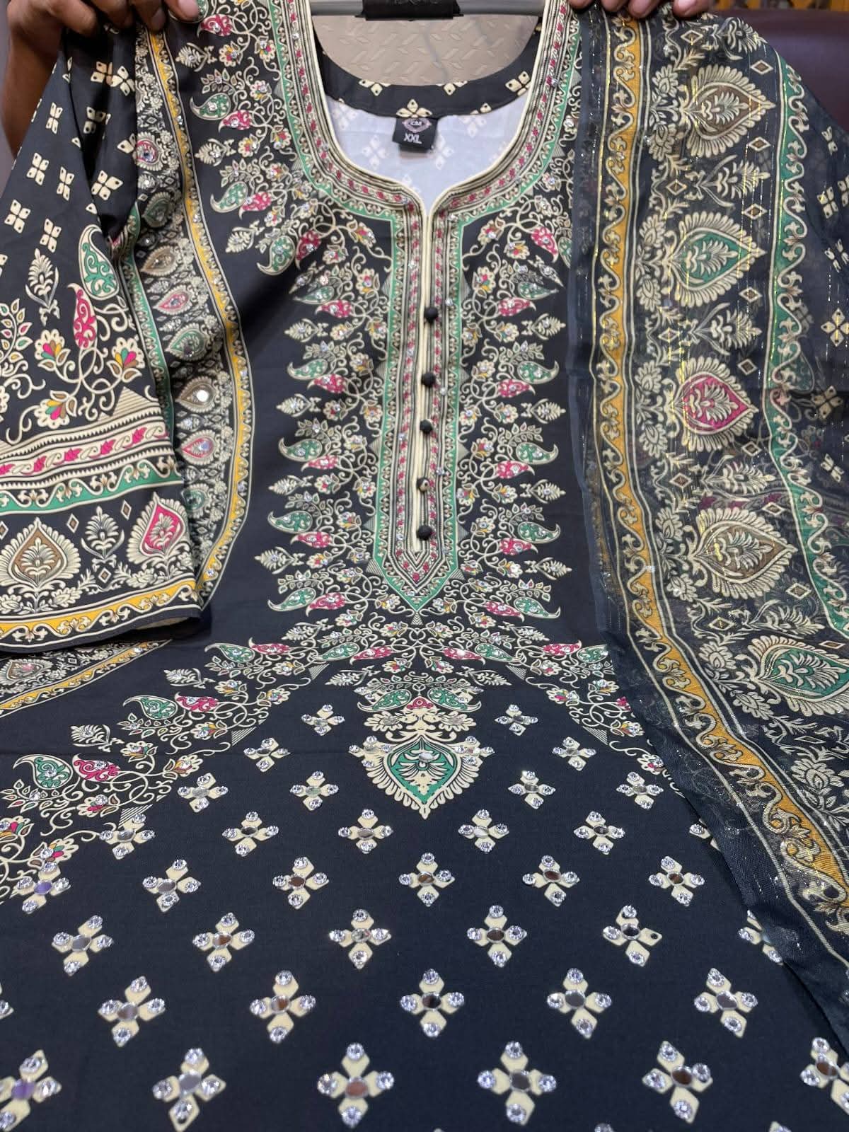 ডিজিটাল প্রিন্টের লেস ওয়ার্ক ডিজাইনের রেডিমেড থ্রি পিস